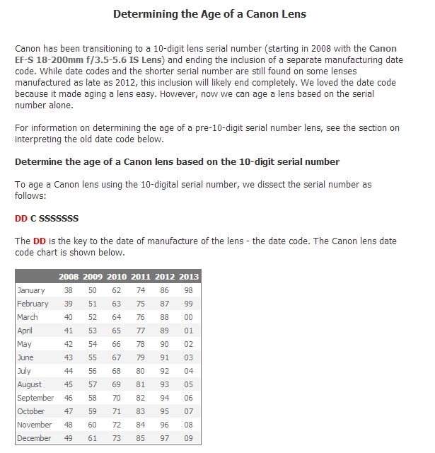 canon lens age by serial number