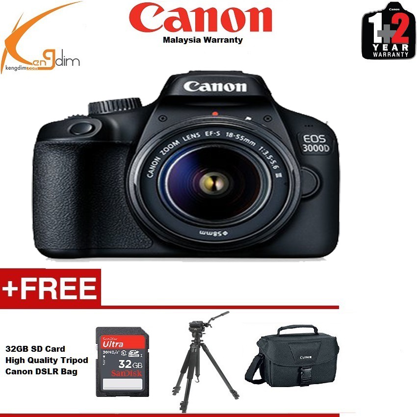 Canon Eos 3000d Dslr Camera With 18 55mm 32gb Bag Lazada