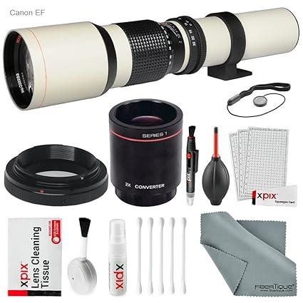 Super Powered 500mm 1000mm F 8 0 Telephoto Lens White With 2x Professional Multiplier For Canon Eos Digital Slr Cameras And Deluxe Accessory Bundle