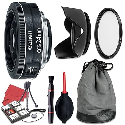 Skip to main content. Canon ef s 24mm f28 stm lens 3 piece uv filter kit lens band 3 piece cleaning kit lens cleaning pen lens cap holder photo4less cleaning cloth deluxe lens accessory bundle. 24mm lenses are the entry into ultra wide angle photography and this lens is the ideal starting point.