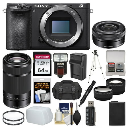Sony Alpha A6500 4k Wi Fi Digital Camera Body With 16 50mm 55 210mm Lenses 64gb Card Case Flash Battery Charger Tripod Kit