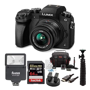 Panasonic Lumix G7 Mirrorless Camera With 14 42mm Lens And Sandisk 64 Sd Card Bundle 7 Items