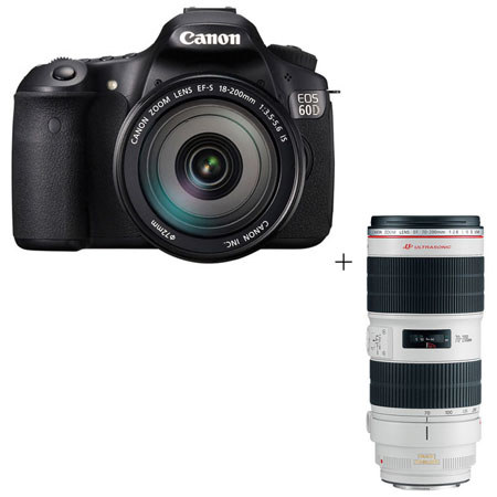 Canon Eos 60d Digital Slr Camera Lens Kit Black With Ef 18 200mm F 3 5 5 6 Is Lens Ef 70 200mm F 2 8l Is Ii Usm Autofocus Telephoto Zoom Lens