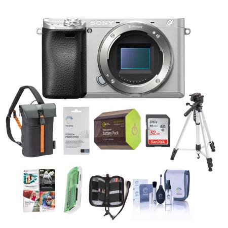 Sony Alpha A6300 Mirrorless Digital Camera Body Silver Bundle With 32gb Class 10 Sdhc Card Camera Case Spare Battery Cleaning Kit Tripod Memory