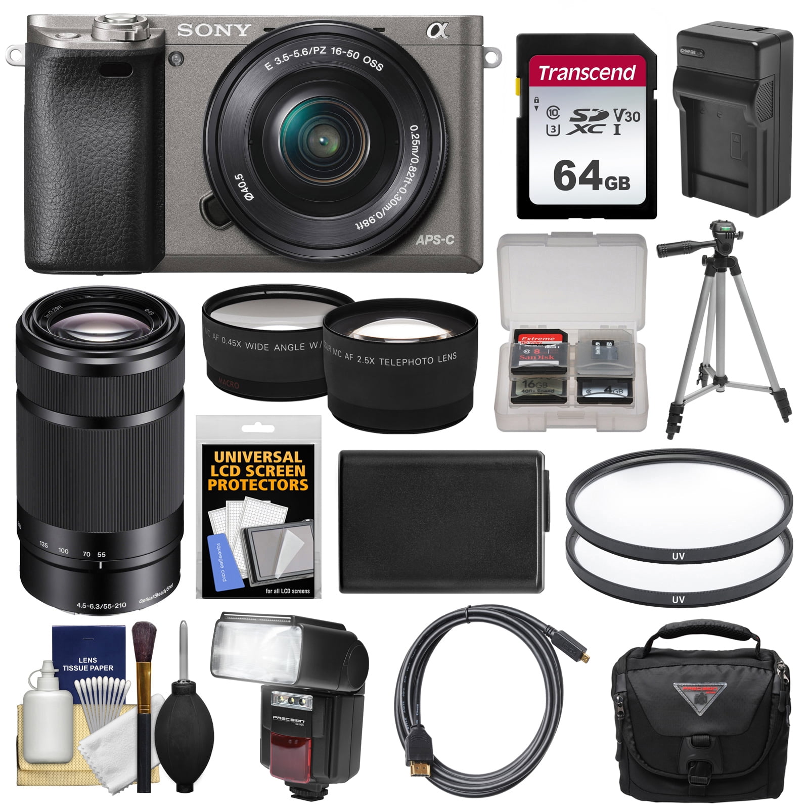Sony Alpha A6000 Wi Fi Digital Camera 16 50mm Lens Graphite With 55 210mm Lens 64gb Card Case Flash Battery Charger Tripod Kit