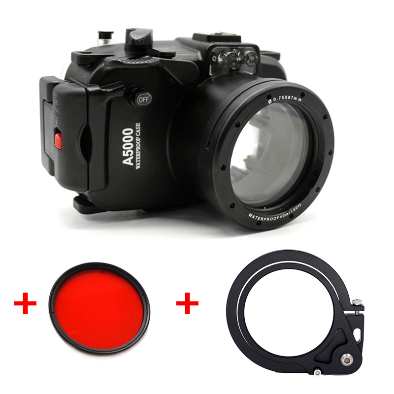 Underwater Waterproof Housing Diving Camera Case For Sony A5000 16 50mm Lens Camera 67mm Red Filter Wet Lens Adapter Mount