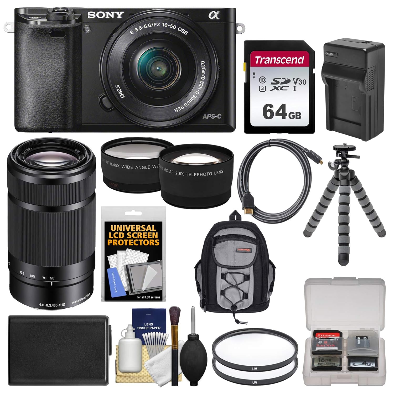 Sony Alpha A6000 Wi Fi Digital Camera 16 50mm Lens Black With 55 210mm Lens 64gb Card Backpack Battery Charger Tripod Kit