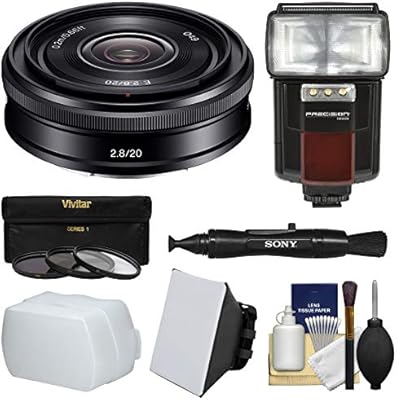Sony Alpha E Mount 20mm F 2 8 Wide Angle Pancake Lens With Flash Soft Box Diffuser 3 Filters Kit For A7 A7r A7s Mark Ii A5100 A6000 A6300