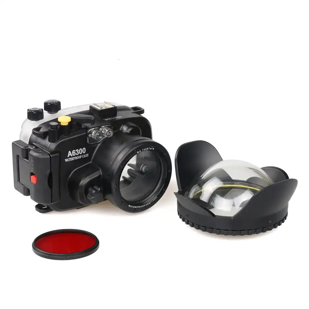Meikon 130ft Underwater Camera Housing Case For Sony A6300 Camera Wide Angle Dome Port Lens 67mm Red Filter