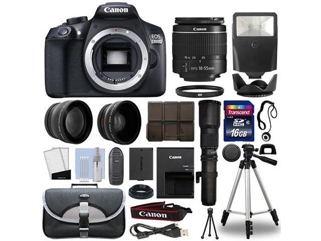 Canon Eos 1300d T6 Dslr Camera 4 Lens 18 55mm 500mm 16gb Telephoto Kit Newegg Com