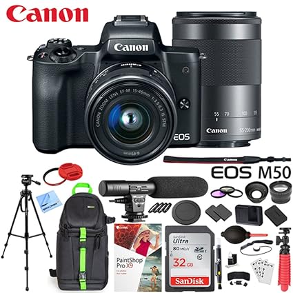 Canon Eos M50 Mirrorless Camera With Ef M 15 45 Mm F 3 5 5 6 Is Stm 55 200 Mm F 4 5 6 3 Is Stm Lens