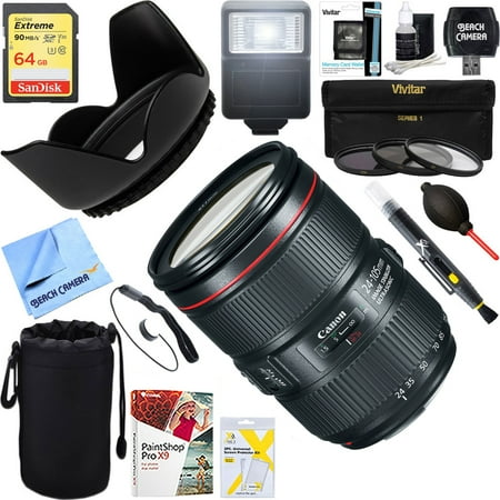 Canon 1380c002 Ef 24 105mm F 4l Is Ii Usm Standard Zoom Lens 64gb Ultimate Filter Flash Photography Bundle