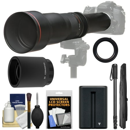 Vivitar 650 1300mm F 8 16 Telephoto Lens With 2x Teleconverter 2600mm Np Fm500h Battery Monopod Kit For Sony Alpha A58 A65 A77 Ii A99 Camera