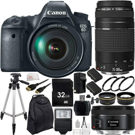 Canon Eos 6d Dslr Camera Triple Lens Kit With Canon 24 105mm 75 300mm F 4 0 5 6 Iii 50mm F 1 8 Ii Lenses Includes 3 High Definition Uv Filters