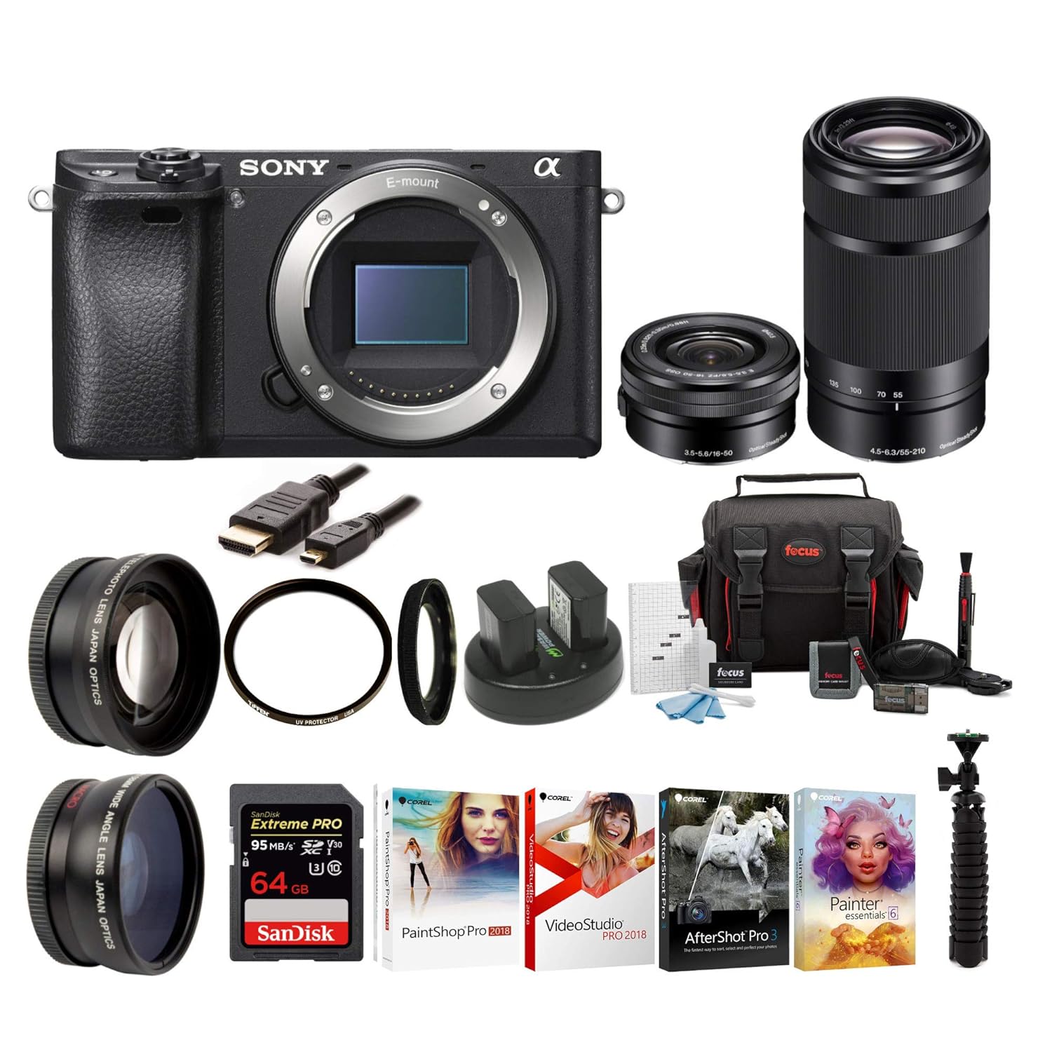 Sony A6500 Mirrorless Camera With 55 210mm Lens And 64gb Sdhc Accessory Bundle