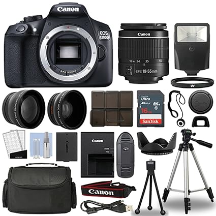 Canon eos 1300d kit 18 55 ii product highlights 18mp aps c cmos sensor digic 4 image processor 30 920k dot lcd monitor full hd 1080p video recording. Canon eos 1300d dslr with 18 55mm lens led tube light and accessory kit see more like this. 50 out of 5 stars.