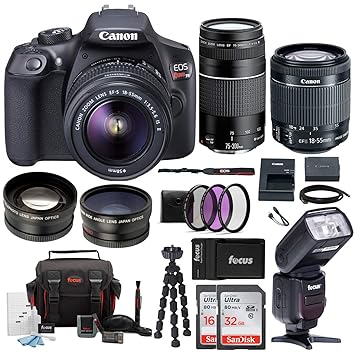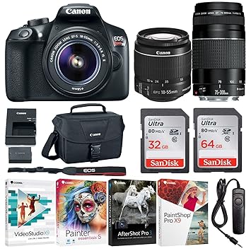 The greatest rebel yet. Unlocking a new world of possibilities these lenses range from ultra wide angle for grand scenic landscapes to super telephoto which can help you capture sports wildlife and more from afar. Canon eos rebel t6 digital slr camera 18 55mm ef s lens ef 75 300mm lens sandisk 64gb card telephoto and wide angle lens extra battery 58mm uv filters gadget bag with bundle accessories.