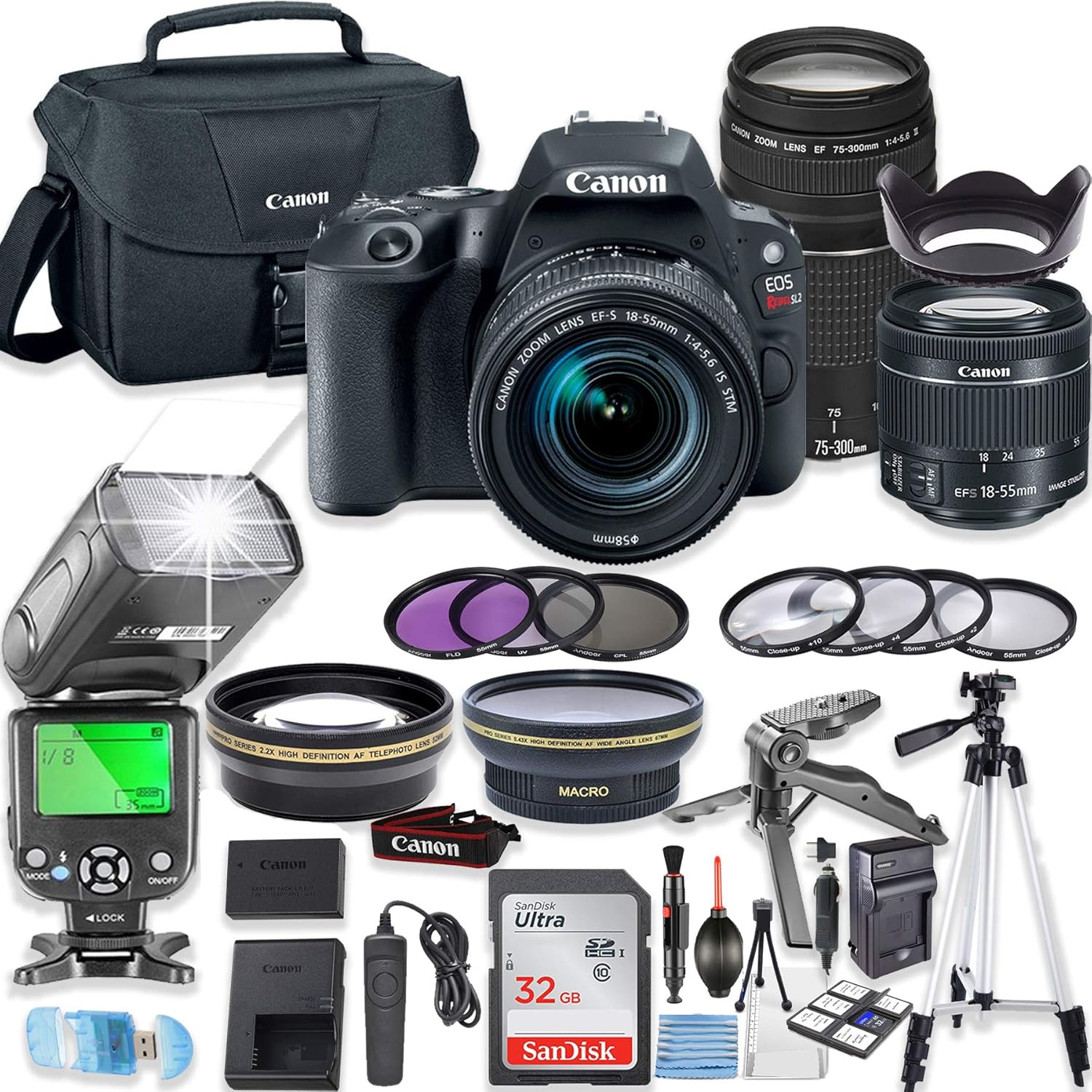 Canon Eos Rebel Sl2 Dslr Camera Bundle With Canon Ef S 18 55mm Stm Lens Ef 75 300mm Iii Lens 32gb Sandisk Memory Canon Case Ttl Flash