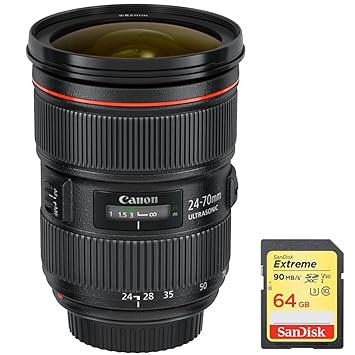 Canon ef 24 70mm f28l ii usm lens5175b002 with professional bundle package deal kit includes sandisk 64gb sd card 82mm 3pc filter kit uv cpl fld 72 monopod dslr camera backpack more.