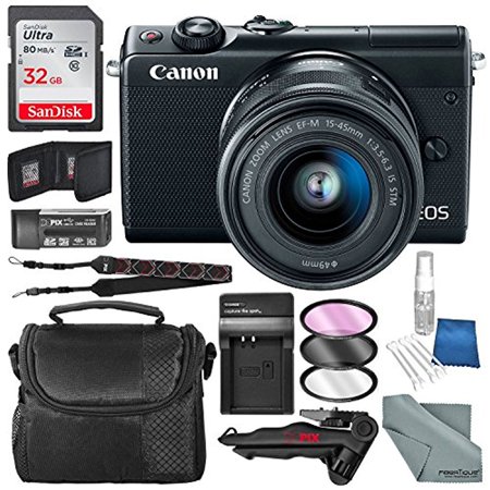 Canon Eos M100 Mirrorless Camera W 15 45mm Lens Wifi Black 32gb Battery Charger Replacement Xpix Tripod Accessory Bundle