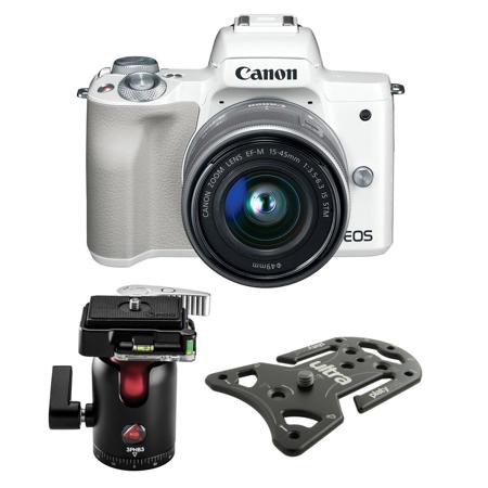 Canon Eos M50 Mirrorless Camera With 15 45mm Stm Lens White With Ultra Plate