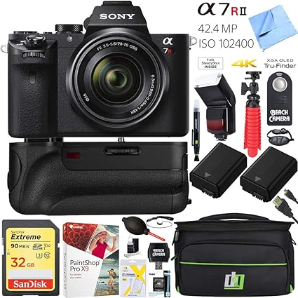 Sony A7r Ii Full Frame Mirrorless Interchangeable Lens 42 4mp Camera Body Bundle With 8 70mm F3 5 5 6 Oss Full Frame E Mount Lens 32gb Memory Card