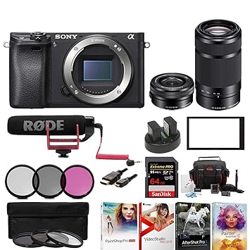 Sony Alpha A6500 Digital Camera W Selp1650 16 50mm Sel55210b 55 210 Zoom Lenses Rode Video Mic Go Bundle