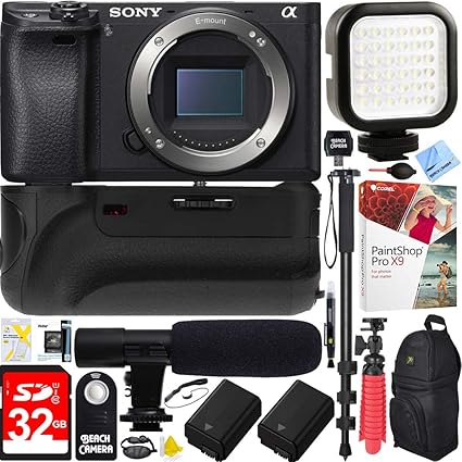 Sony Alpha A6000 24 3mp Interchangeable Lens Camera Body Only Ilce6000 B 64gb Battery Grip Shotgun Mic Pro Video Bundle