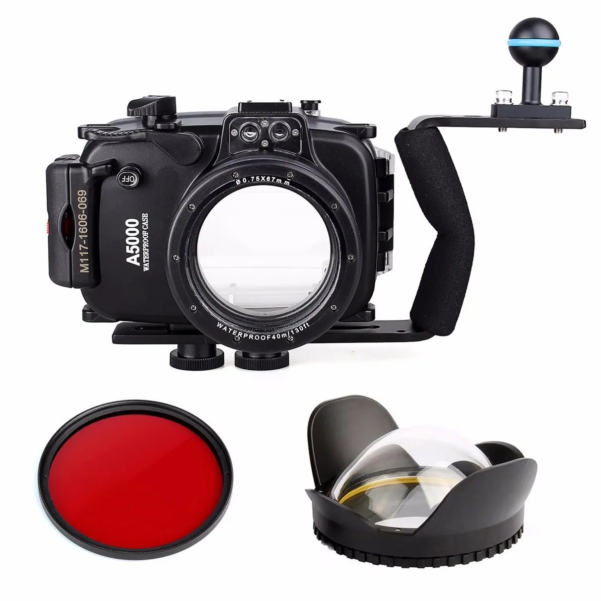40m 130ft Waterproof Underwater Diving Camera Case For Sony A5000 16 50mm Diving Handle Fisheye Lens Dome Port Filter In Camera Video Bags From